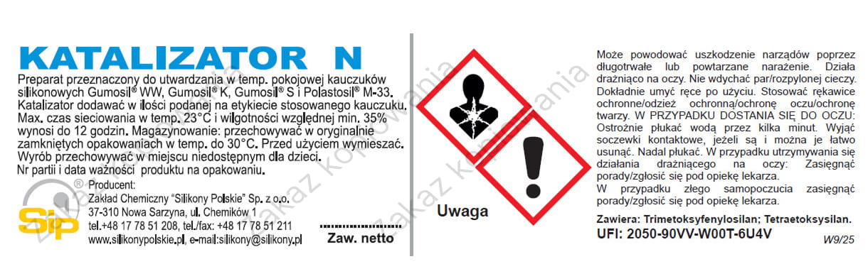 Katalizator stosuje się w ilości: 5 części wagowych na 100 części wagowych Gumosilu®