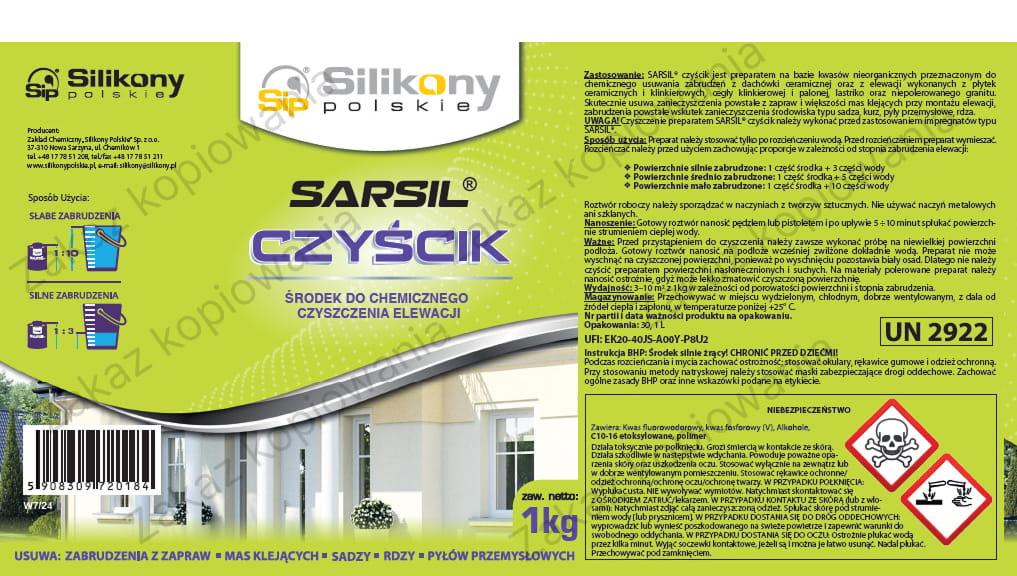 UWAGA! Czyszczenie preparatem SARSIL® czyścik należy wykonać przed zastosowaniem impregnatów typu SARSIL®.